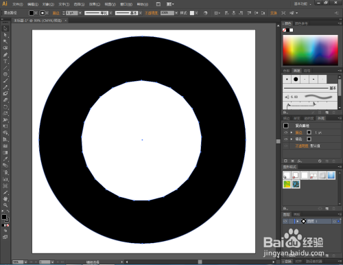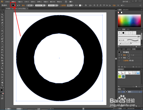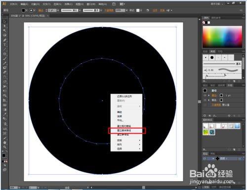 点击【选择东西】,同时选中圆形图案和二十五边形图案。点击鼠标右键-【成立复合路径】,将两图案路径进行连系;