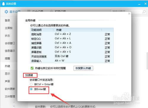 在设置界面,选择热键选项卡,并点击“设置热键”。