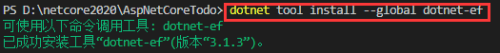 新版本的.NET Core SDK中号令为dotnet-ef,我们输入