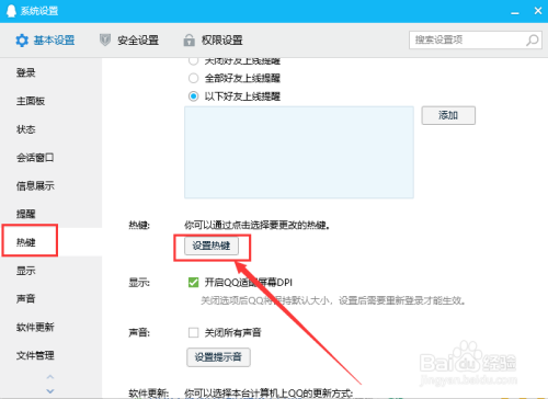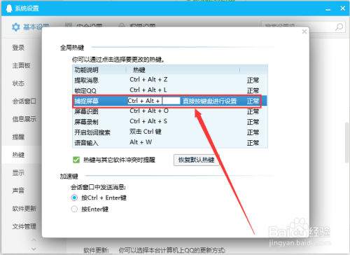 在设置界面,选择热键选项卡,并点击“设置热键”。