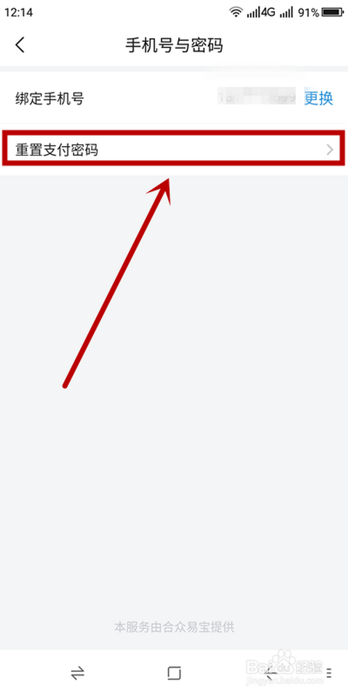 进入【手机号与暗码】页面后,单击【重置支付暗码】选项