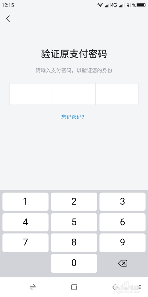 7、先输入本来的支付暗码进行验证,验证当作功后再输入新的支付暗码即可