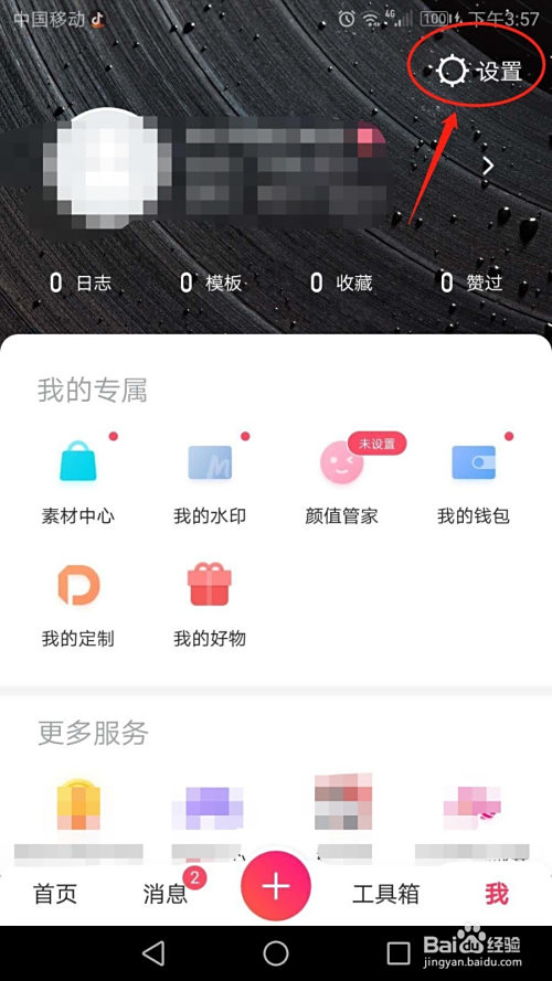 进入美图秀秀“我”页面,点击右上角的“设置”。