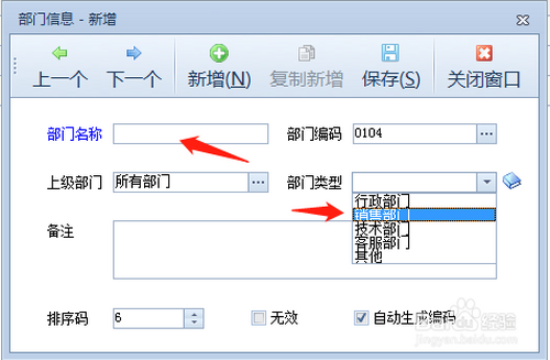 在弹出的【部分信息-新增】窗口输入部分名称并选择部分类型;