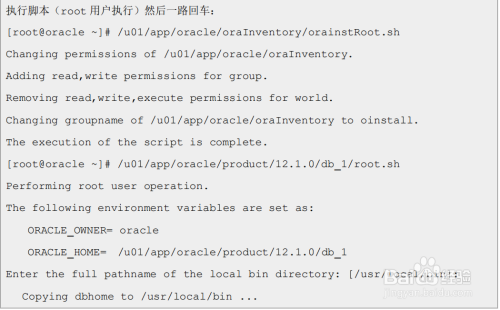 安装过程中,弹出下图窗口,不成直接点OK,双击1、2记实,复制后,在root用户下执行完当作后,方可点击OK,执行环境如下图。