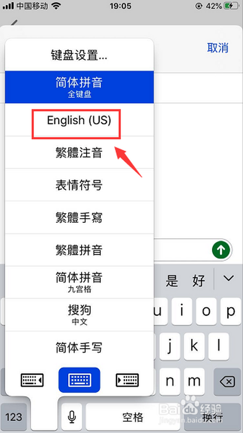 在苹果手机键盘下方长按小球改换输入法
