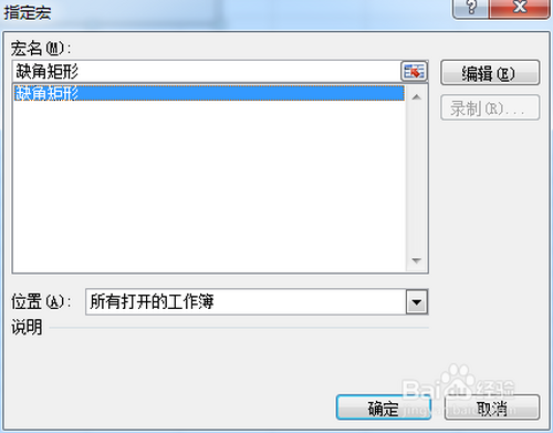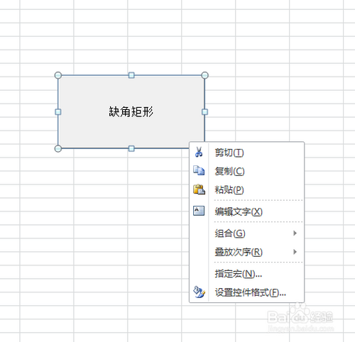 7.选中“缺角矩形”控件,然后点击鼠标右键,选择“指定宏”。