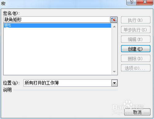 4.写明VBA代码名称,然后点击“建立”按钮。