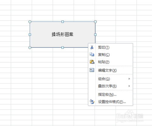 7.选中“操场形图案”控件,然后点击鼠标右键,选择“指定宏”。