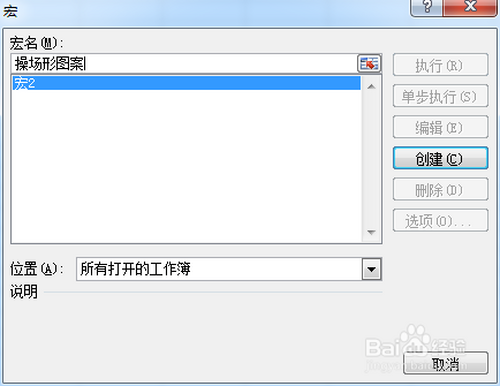 4.写明VBA代码名称,然后点击“建立”按钮。