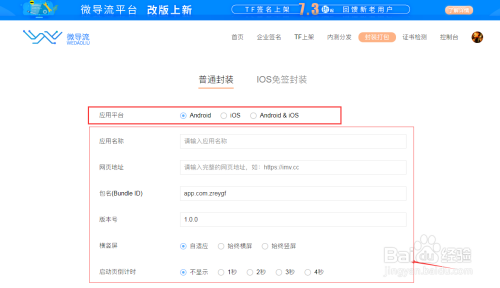 进入封装页面,输入APP名称,网站地址,选择APP图标和启动图,