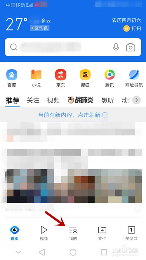 打开手机QQ浏览器后,主动进入本家儿页面,然后点击下方的【我的】。