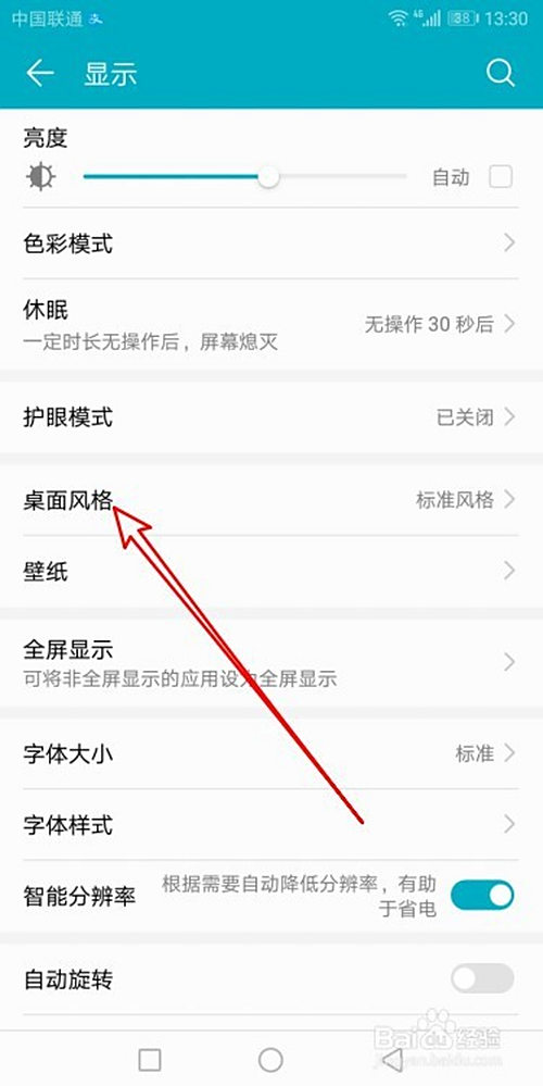 接下来在打开的显示页面,点击桌面气概的设置项。