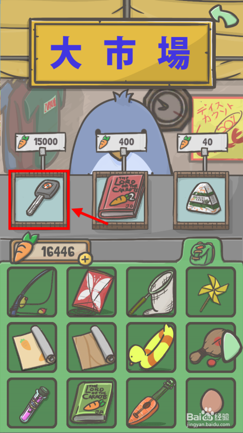 大商场里面的工具是随机出的,看到车钥匙后花15000根胡萝卜采办。如没有刷到车钥匙可以先退出商铺,过一段时候再进入。