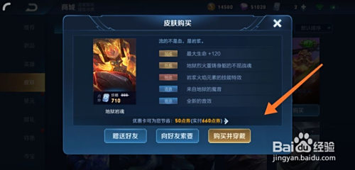 然后点击皮肤,找到廉颇皮肤地狱岩魂,点击采办。