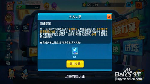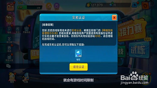 5、没有进行实名认证,就会有游戏时候限制。实名认证之后,可以领取到钻石奖励。