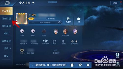 点击后,界面显示出我们的汗青战绩,选择一个我们想查看的对局