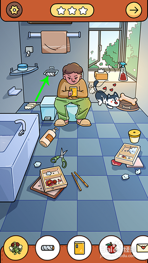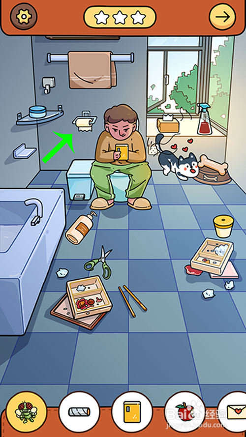 点击马桶旁的卷纸抽完,在点击纸筒收起。