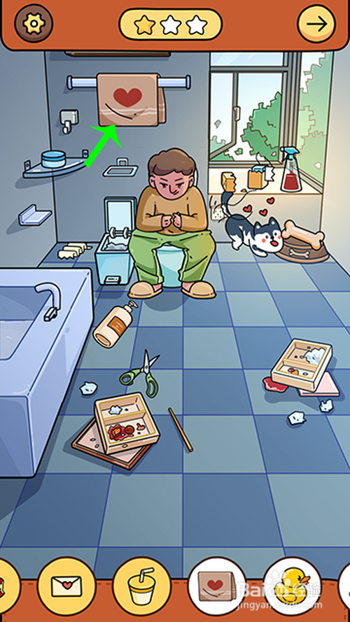 点击窗台的喷壶到毛巾处,喷出爱心毛巾点击收起。