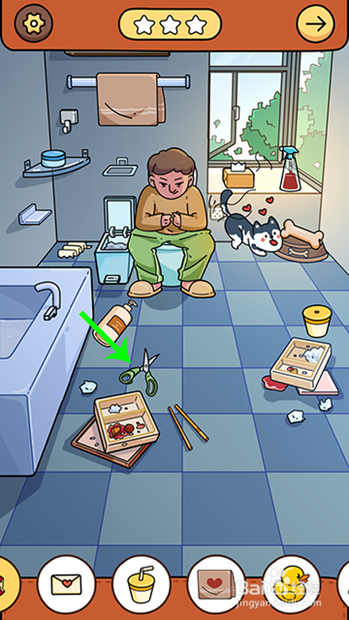 点击地上的铰剪,将窗台上的纸抽剪开,发现信封点击收起。