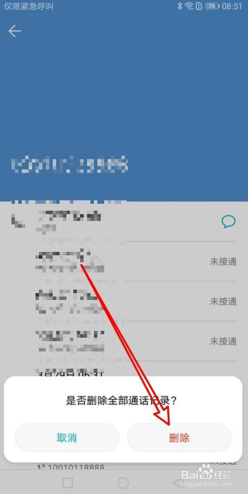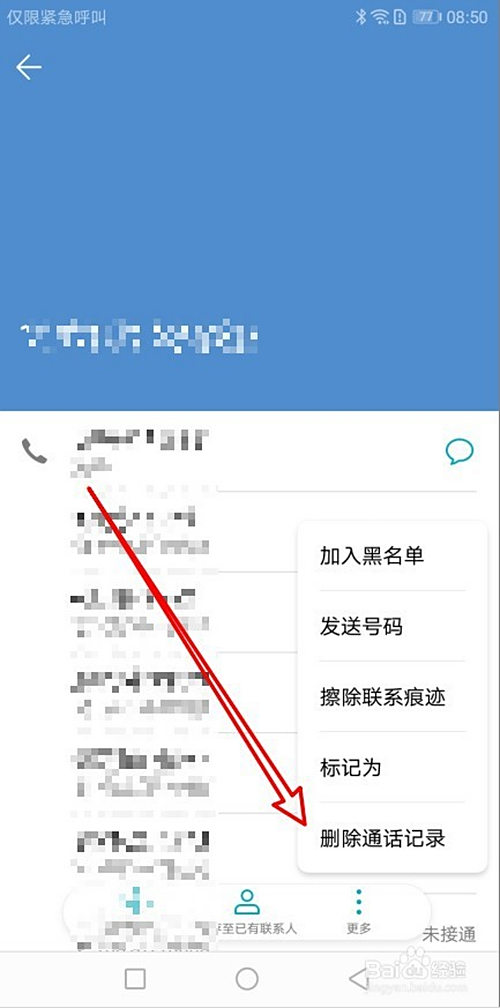 接下来在打开的菜单中选择删除通话记实的菜单项。