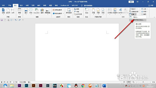 2.在对象的下拉菜单中,点击文件中的文字选项。