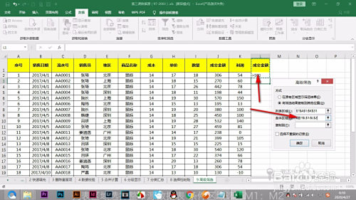 1.打开高级筛选之后,点击列表区域,鼠标框选整个表格。