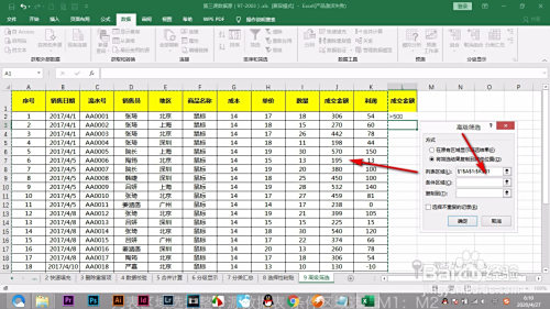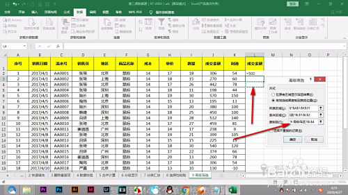 2.然后点击前提区域,鼠标框选当作交金额和大于五百的单位格。