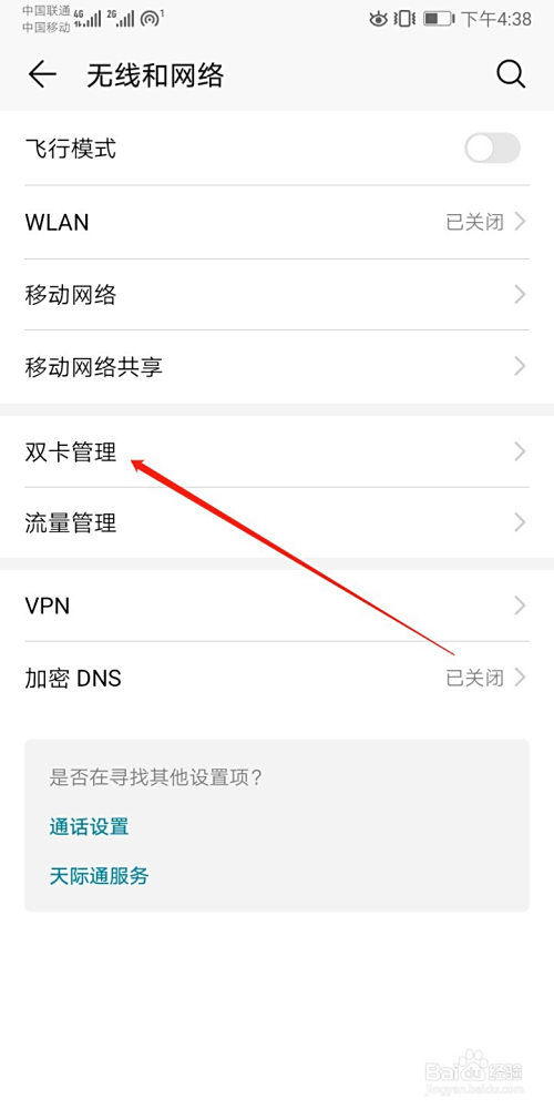 5. 在这个页面我们既可以切换移动数据,也可以切换拨号卡,点击卡2.