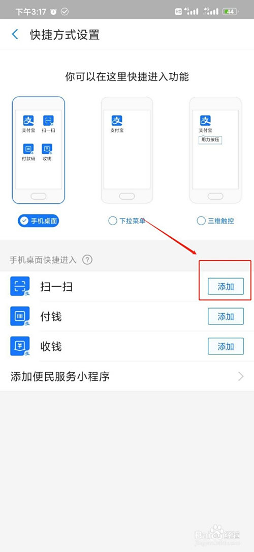 点击【扫一扫】右侧按钮【添加】添加速捷体例。