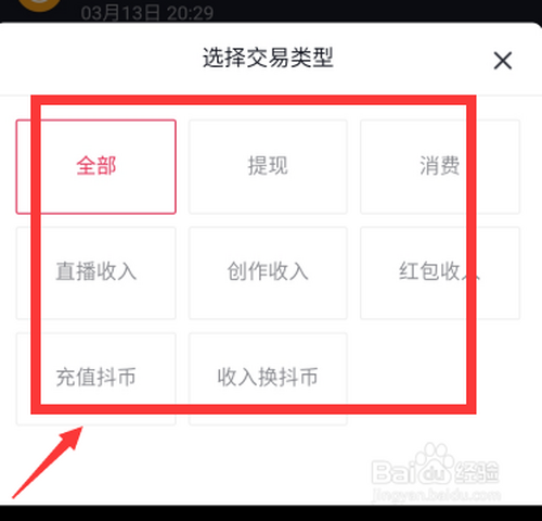 6、点击账单下方“全数买卖类型”,选择买卖类型可以查看响应的明细。