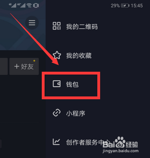 右侧弹出菜单栏,点击“钱包”。