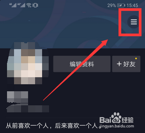抖音首页,点击右下角“我”再选择右上方三条横杆。