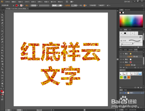 选中文字,点击【红底祥云】,完当作红底祥云文字结果的建造。