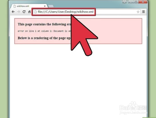 打开XML文件。点击XML文件的URL地址或选中并拖拽XML文件到新打开的浏览器窗口中。