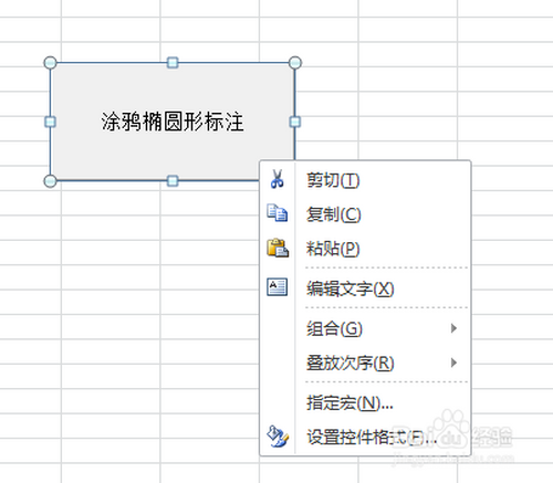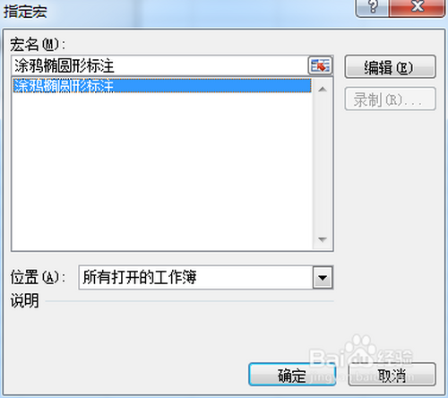 7.将按钮控件定名为“涂鸦卵形标注”,然后点击右键,选择“指定宏”选项。