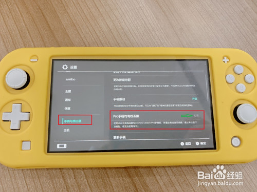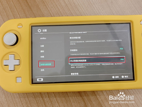 左侧下拉找到“手柄与感应器”,右侧找到“pro 手柄的有线毗连”然背工动开启。
