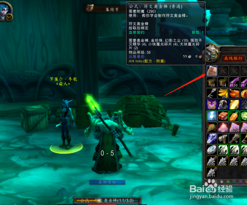右键点击背包中的“公式:符文奥金棒”,即可学会建造符文奥金棒。