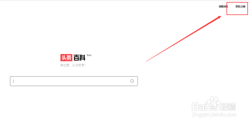第二:进入【头条百科】官网点击右上角登录选项手机账户注册登录。
