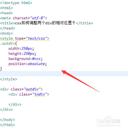2、在css标签内,设置外部div的样式,定位属性绝对定位。