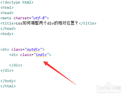 在test.html文件内,别离设置div的class属性为outdiv,indiv,用于下面界说其样式。