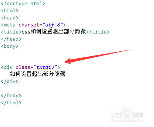 在test.html文件内,设置div标签的class属性为txtdiv,用于下面经由过程该class界说其样式。