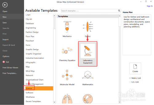 1、打开Edraw Max,在科学中双击尝试仪器;