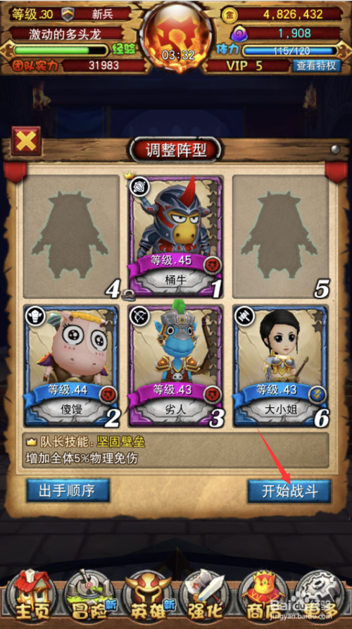 按照下图所示设置英雄站位和出手挨次,点击起头战斗。