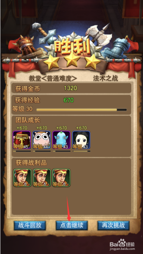 本关卡奖励670点经验,点击下方点击继续按钮分开副本。