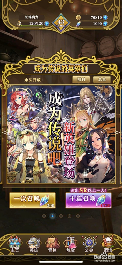 6、可以在酒馆里呼唤,每召换十次就会呈现一个UR英雄,想要获得更多UR英雄,要有足够的精石,可以采办,也可以使命获得。