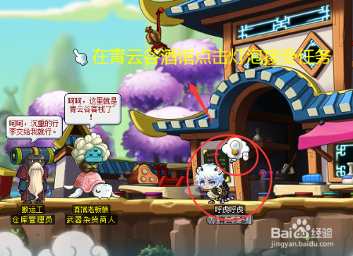 在青云谷酒馆点击人物头上灯胆接管使命。