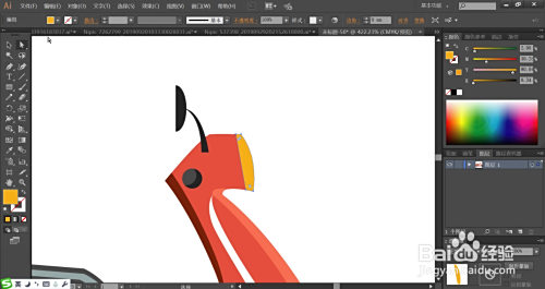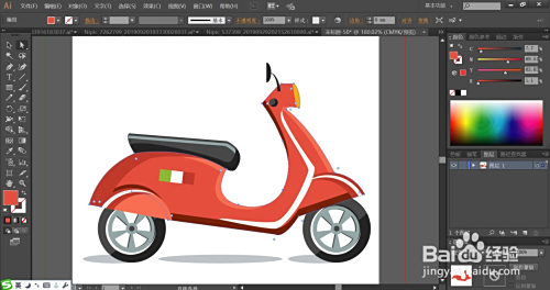 利用橙黄色填充车灯,再用黑色填充不雅后镜,车把手也用黑色填充,完当作电动车图片设计。