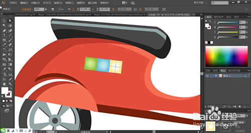车体正面的标贴用绿色、蓝色、黄色填充小方块,再用网格东西点击一下小方块让其呈现渐变色的结果。
