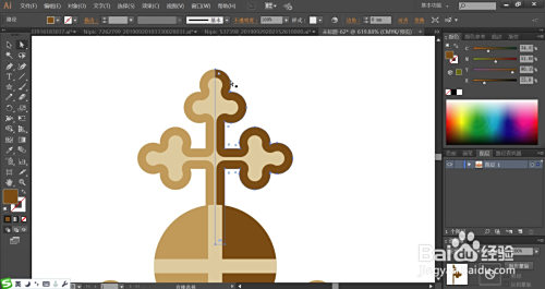 利用明暗金色与米灰色搭配填充王冠的顶端小树的路径,内部用淡色,外部用深色填充。